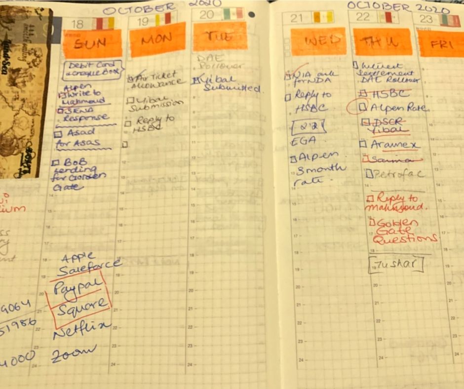 Where there is a will, there’s a way right? I really wanted to go back to this one compact book system, so I took out my half-finished one from 2018, and set it up. I used Washi tape over the days and wrote in my own dates and days. I managed to reconfigure the monthly calendar so it worked out to match months this year.